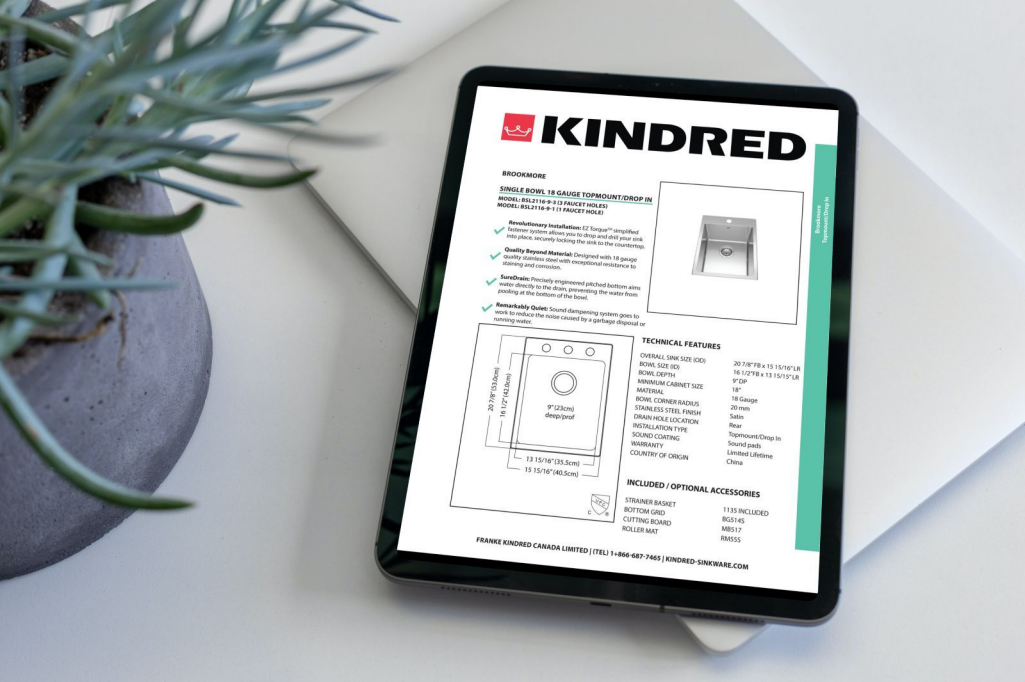 Find technical documents for Kindred products, including DXF files, Spec Sheets and installation manuals.